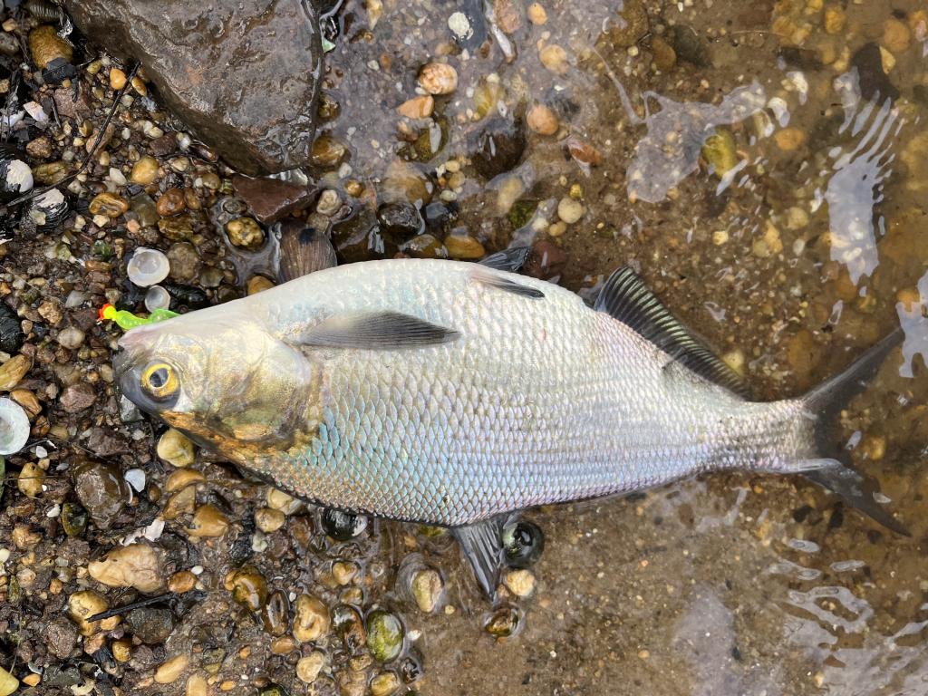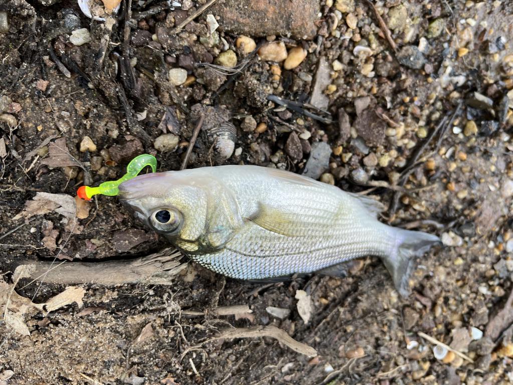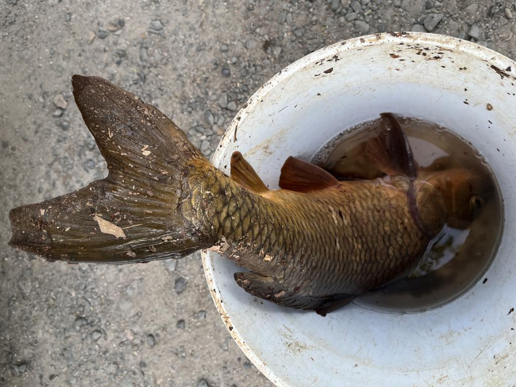Went fishing 🎣 in 67 degrees Carnegie Lake this evening on a warm, sunny day with a light south wind. Only saw three other fishermen. Threw out canned, whole kernel corn 🌽 for chum, then caught and released 10 white perch, 3 largemouth bass and a 12” gizzard shad with a 1/32 oz twister tail jig on 2 lb test line. Landed a 27” 8 lb 14 oz common carp with corn 🌽 bait. Caught nothing with my homemade corn meal bait again. While walking 🚶 back to my car to leave, I saw a fisherman catch and release a black crappie with a lamprey eel attached to it from the canal. Took a photo. Met two women from Hawaii via California and two women from Bangladesh 🇧🇩 in the parking lot. Caught 26 carp this year.