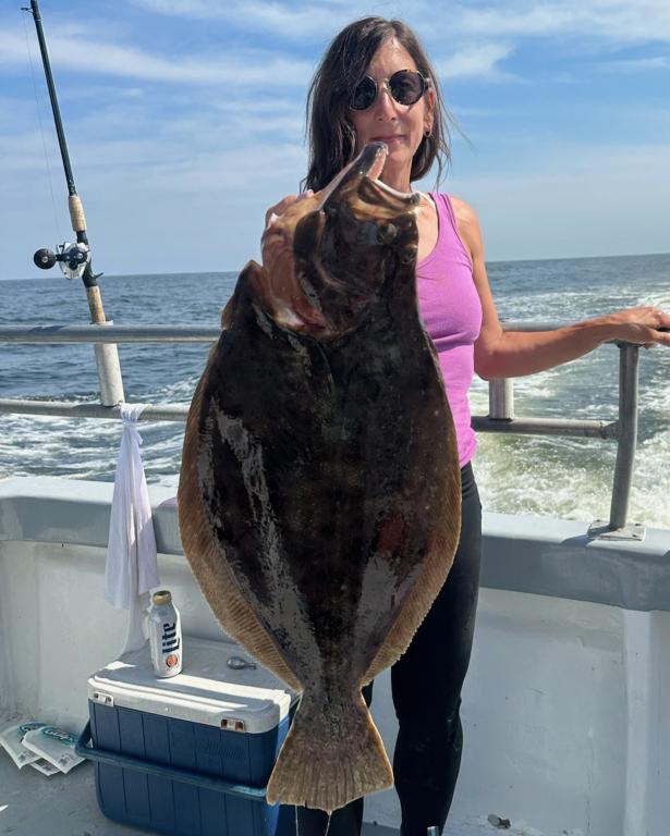 Another drop dead gorgeous day on the fluke grounds today. Steamed right to where we had the best life yesterday to only find a couple of keepers and a handful of shorts. Knew it wasn't going to happen so took off. Looked all over the place, not finding too much in our travels. Finally landed on a very nice patch of fish and the guys went to work. All the keepers were very nice quality with decent short life in the mix. The out of season jumbo Seabass were a pain too. Couple of limits, couple with 2 and a bunch of singles spread around. Lisette stuck the pool winner showing all the guys up💪