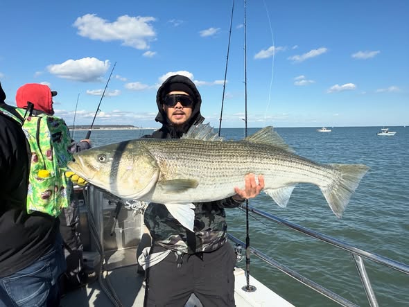 Beautiful day out on the Miss Belmar Princess. We worked hard today and wound up with 2 stripers and 1 albacore on deck. There were fish splashing all over the surface, but they just didn’t want to bite. That’s fishing, some days it’s a challenge, but the hunt is half the fun.