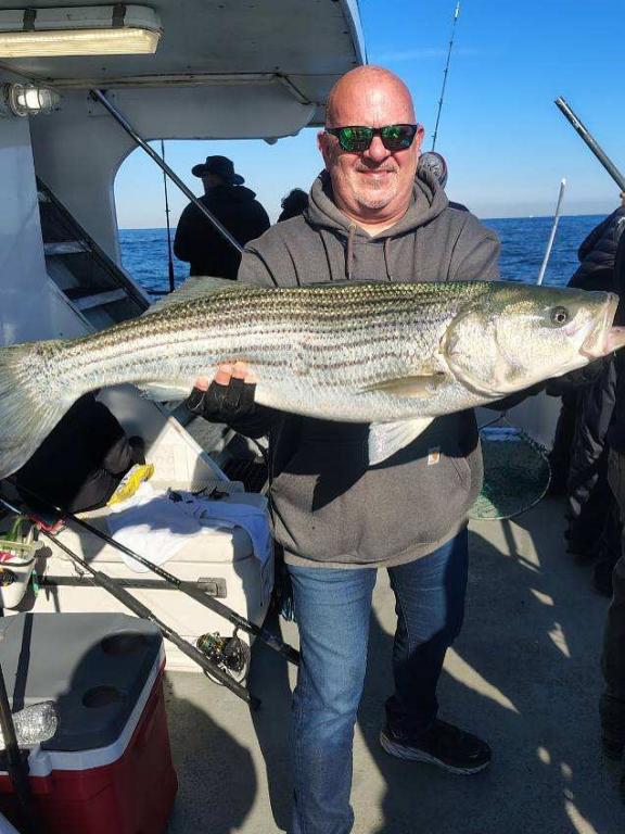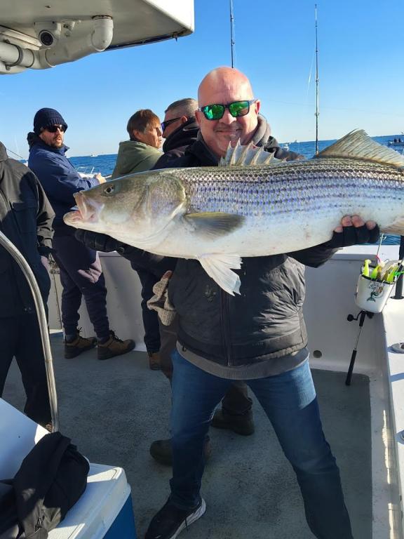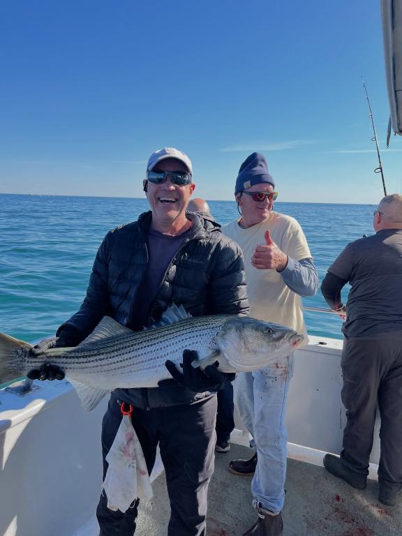 What a day out on the ocean. One of the best fishing days of the season! The jumbo stripers were coming over the rail nonstop, keeping everyone busy from start to finish.
