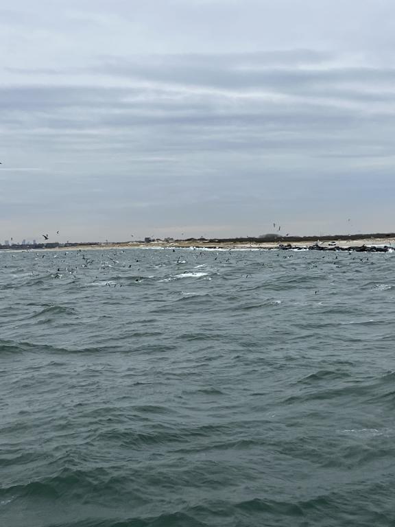 It took a little while in the morning to locate them but when we did, there was a big spread of birdlife with the BASS up on top working on bait.