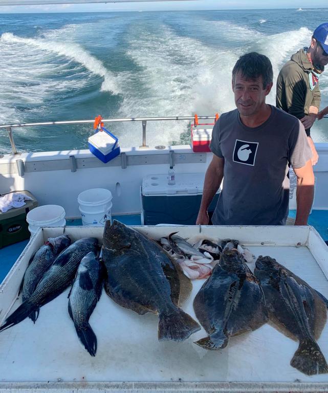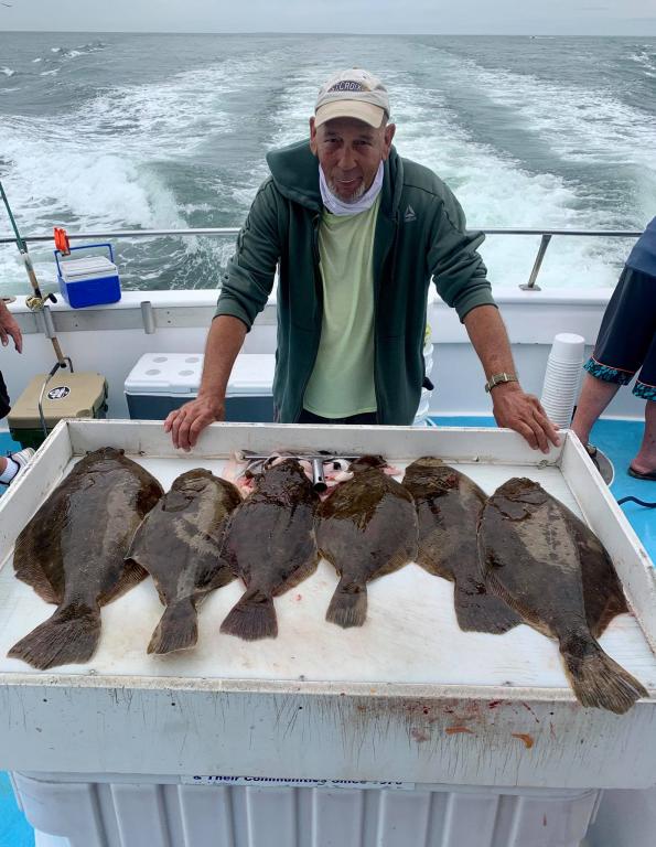Onboard the Miss Montauk II today ~ Jeff had the pool winning Fluke weighing in at 6.9 lbs ~ Nice! Tough bite with the conditions.