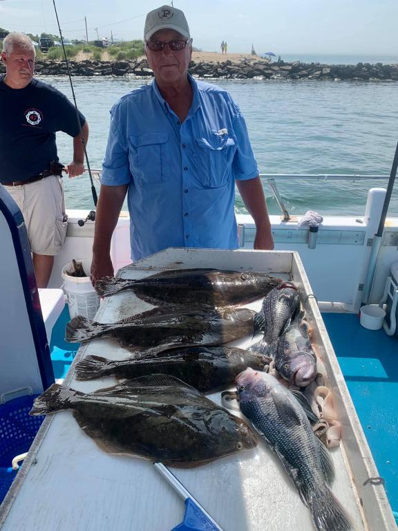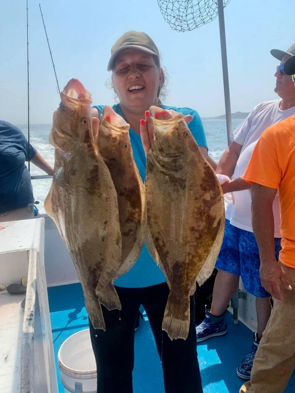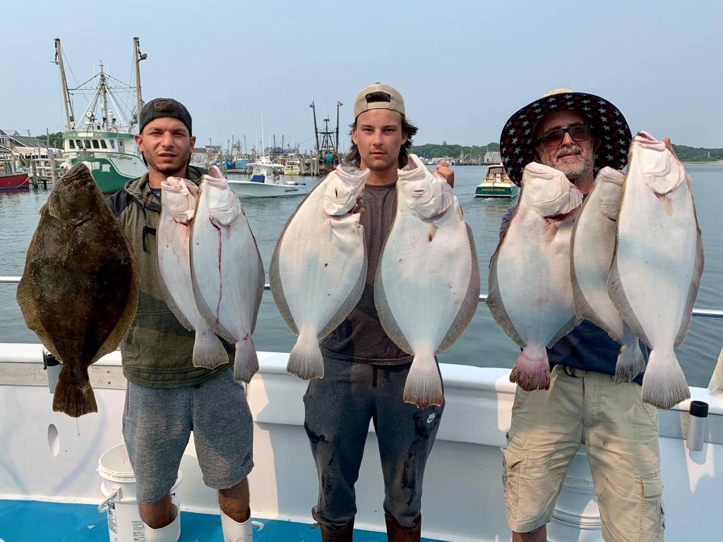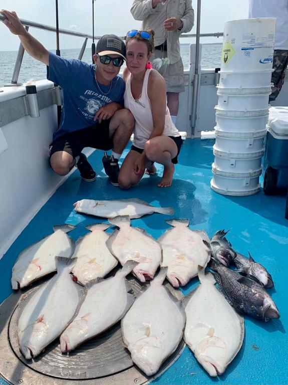 Onboard the Miss Montauk II ~ Mike had today’s pool winning Fluke weighing in at 7.2 lbs ~ Sweet! A good day of fishing! Tyler & Jess snuck on for a day well deserved day of fishing in too! We are Full Day Fluke Fishing Daily 7am - 4pm. Limited to 45 anglers ~ by Reservation #631-668-1545