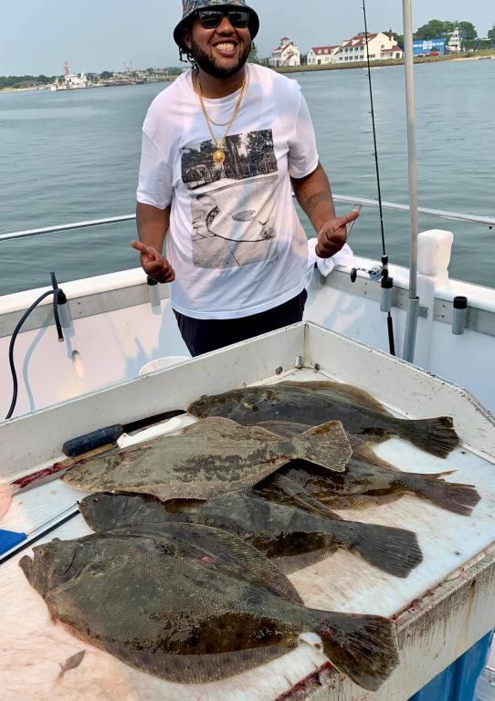 Onboard the Miss Montauk II ~ Friday Evan had the pool winning Fluke weighing in at 8lbs ~ Sweet! Saturday Andrew had the pool winner weighing in at 8.2lbs ~ Awesome! Fishing has been pretty good! We are Full Day Fluke Fishing Daily 7am - 4pm. Limited to 45 anglers ~ by Reservation #631-668-1545