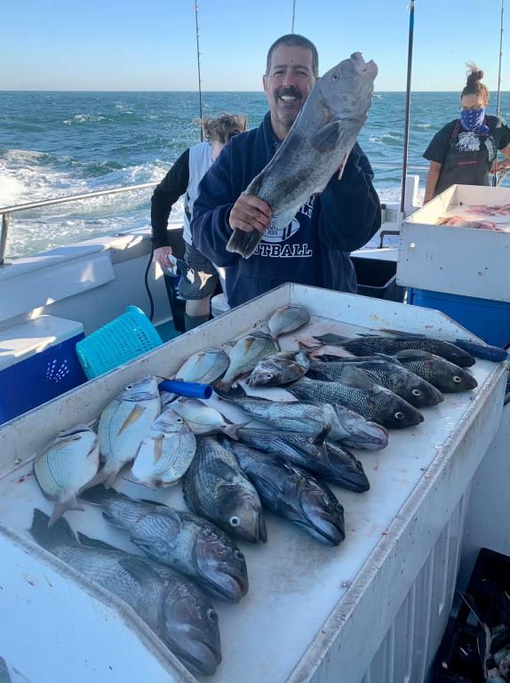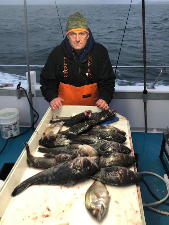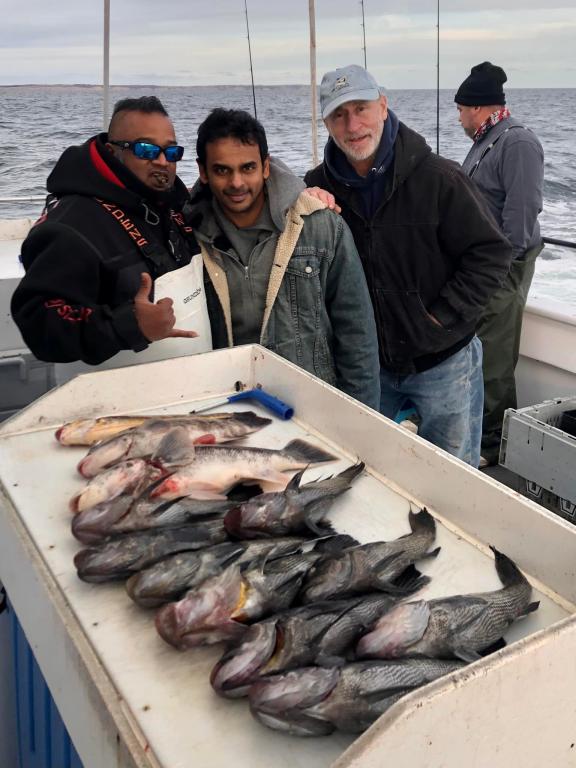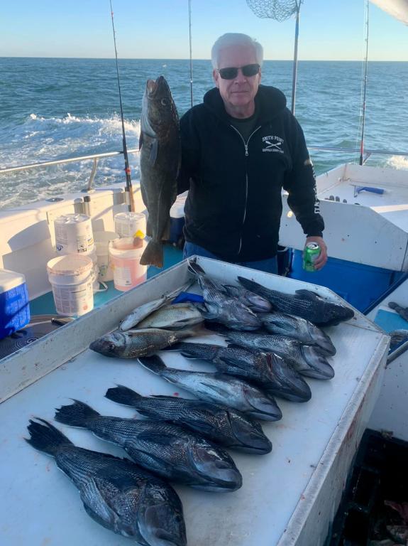 Onboard the Miss Montauk Saturday ~ a nice fall mixed bag! Fred caught the pool winning Cod ~ Sweet! We still need a few more anglers for tomorrow’s trip (Monday) weather looks good. Wednesday also looks good & we still have room if you want to join us (Wednesday is the last day for Blackfish.) Full Day Fall Fishing ~ BlackFish, SeaBass, Cod ~ 6am - 4pm, $140 per angler. LIMITED TO 30 ANGLERS by RESERVATION #631-668-1545