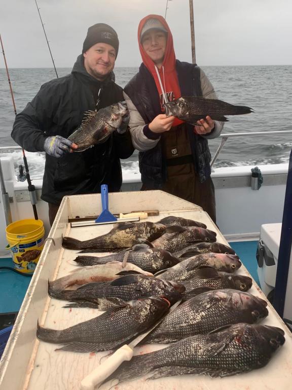 Onboard the Miss Montauk Wednesday ~ a good day of fall fishing with a nice mixed bag! Larry had today’s pool winning BlackFish weighing in at 7.56lbs ~ Sweet! Full Day Fall Fishing ~ BlackFish, SeaBass, Cod ~ 6am - 4pm, $140 per angler. LIMITED TO 30 ANGLERS by RESERVATION #631-668-1545