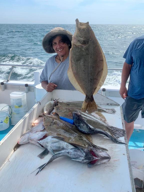 Onboard the Miss Montauk II ~ Ronni had today’s pool winning Fluke weighing in at 8.4 lbs ~ Sweet! Good fishing today! Full Day Fluke 7am-4pm Daily $130 per Angler ~ LIMITED TO 45 ANGLERS by RESERVATION #631-668-1545