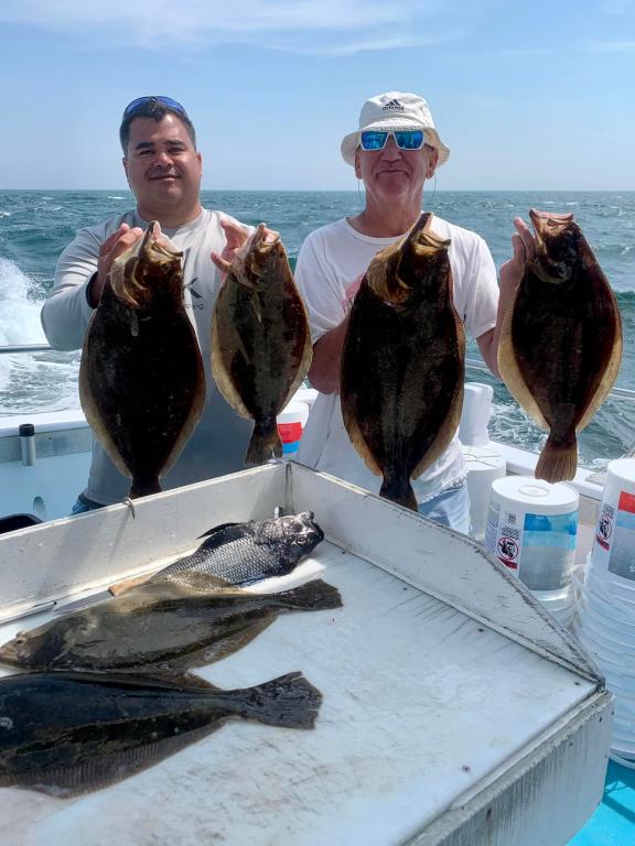 Onboard the Miss Montauk II ~ Ronni & Sal each had a DOORMAT today! Ronni’s weighed in at 11.78 lbs & Sal’s weighed in at 10.06 lbs ~ Fluketastic x 2! Very good fishing today! Full Day Fluke 7am-4pm Daily $130 per Angler ~ LIMITED TO 45 ANGLERS by RESERVATION #631-668-1545