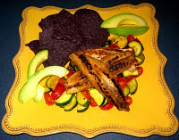 Place in hot non stick pan sprayed with Pam or canola spray. Cook fish 1-2 minutes on each side. Sauté zucchini, cherry tomato halves in canola oil. Slice ripe avocado into wedges. Serve as show with blue corn chips. Enjoy.. Leif