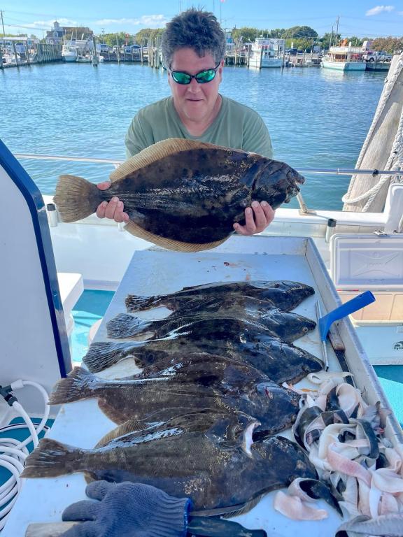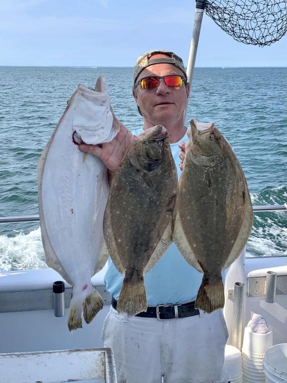 Onboard the Miss Montauk II ~ Bill had today’s pool winning DOORMAT Fluke weighing in at 10.52lbs ~ Fluketastic! Full Day Fluke 7am-4pm Daily $130 per Angler ~ LIMITED TO 45 ANGLERS by RESERVATION #631-668-1545