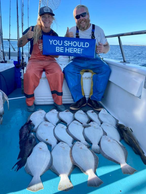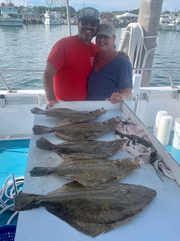 Onboard the Miss Montauk II ~ Another Fluketastic day on the Special 12 hour Exploratory Trip ~ fishing Wonderworld & beyond! Brian had today’s pool winning Fluke weighing in at 9.5lbs ~ Awesome! Anthony & Lindsay showed up with their game faces on too ~ way to go! Our regular schedule is Full Day Fluke 7am-4pm Daily $130 per Angler ~ LIMITED TO 45 ANGLERS by RESERVATION #631-668-1545