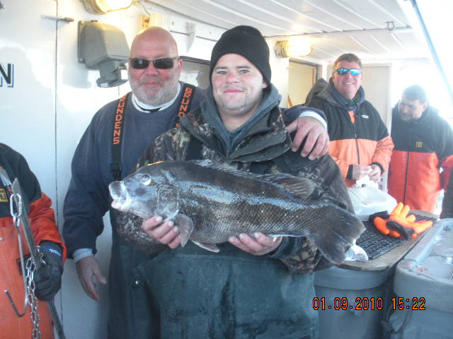 Each angler will be given a TAG with their corresponding NUMBER on it and a plastic wire-tie. Everyone will be on the HONOR SYSTEM that he only tags fish HE caught. HE will be responsible to attach said tag to his biggest tog. He MAY upgrade at any time during the trip, extra wire ties will be available. At the conclusion of the trip each angler may weigh in ONE fish. The heaviest fish wins the pool! BUT..............