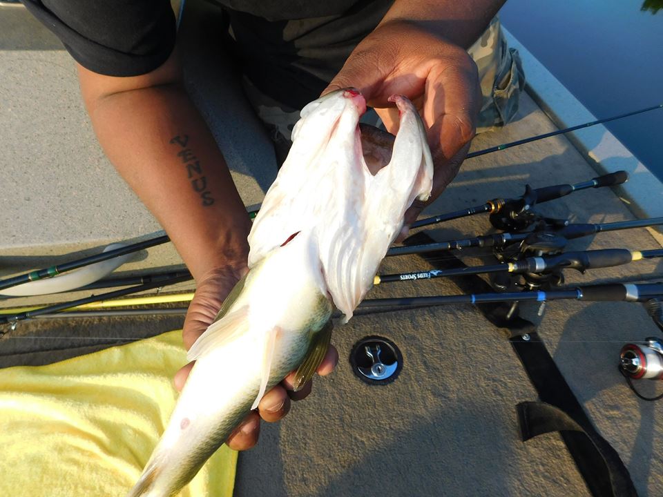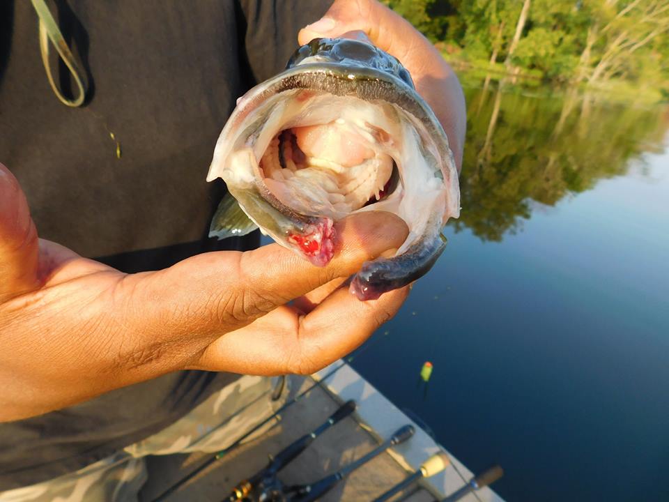 The bass are more likely victims of those terrible culling systems the bass tourney guys use. They punch through the lower jaw with a stringer type clip????