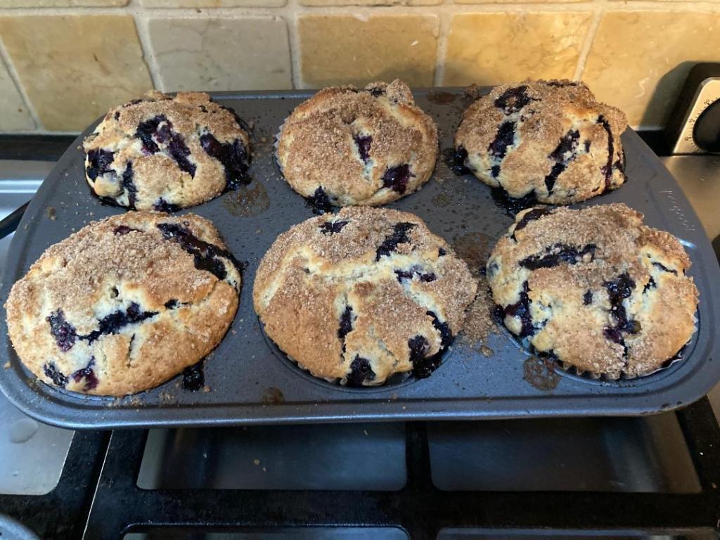 - place mixed batter into 12 jumbo muffin cups, I use paper