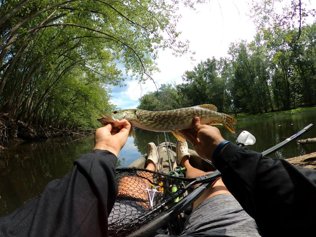 Caught this Pike. Noticed some very distinct and unique patterns. Started thinking it could be a Hybrid. My best guess is pickerel x pike, I also thought it looked like a Redfin pickerel (in which case it would be a state record)