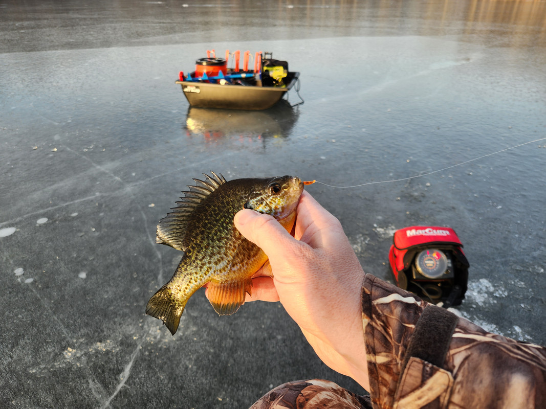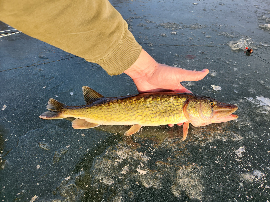we set a spread of tip ups and by dawn it was flag city. we were trying to jig too but ended up mostly just running around servicing the tip ups for a while. several times had multiple flags going at once as fish moved through, real busy early morning. plenty of chains, a couple nice ones over 20". whole lot of flags where you'd see a fast run on the spool but then they'd drop it. after a couple hours things slowed down and jigged a bunch of the little panfish that keep the pickerel fat and happy. couple nice perch mixed in but they got a pass that day. jigged up a some nice trout during the day too, great fun on an ice rod with a 500 class reel... we figured these were probably the fast hit & runs on the tip ups. headed off the ice around 2 with only a few shiners left, great day. ![]() ![]() ![]() ![]() ![]() ![]() ![]() since the edges were getting soft and thin by thursday afternoon i'm sure things are pretty well shot by now, and the forecast is looking just awful. hopefully things turn around and we get more of a season later in january. wear your picks, bring a buddy if you can, and be safe out there fellow hardwater nuts! happy new year everybody! 🥳