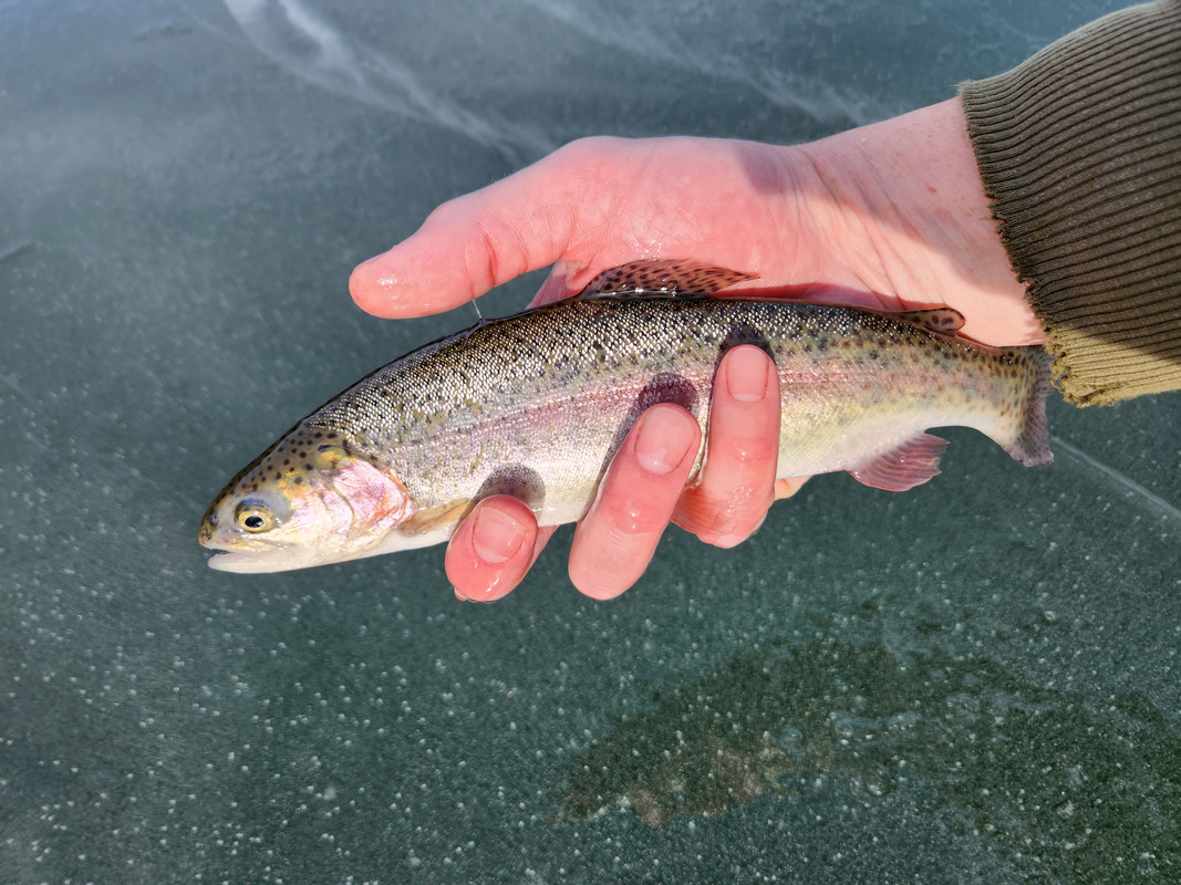 NICE you got some rare trout caught through the ice. nice mixed bag well done. you do not hear of trout reports on the ice to often.