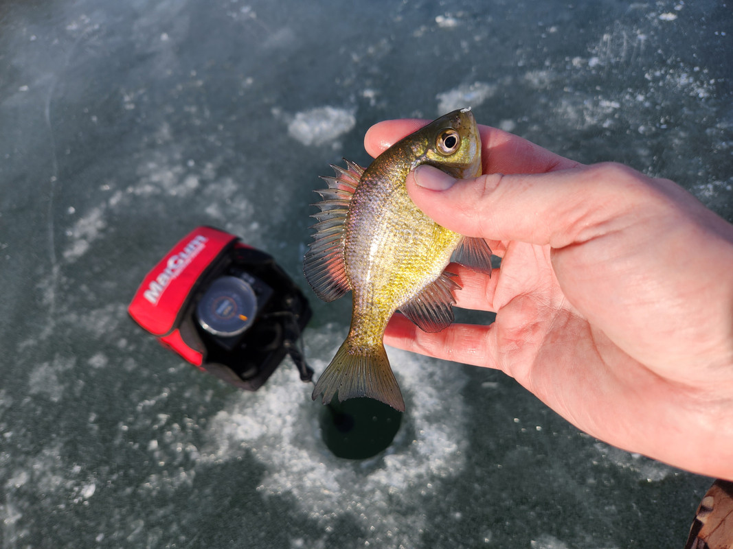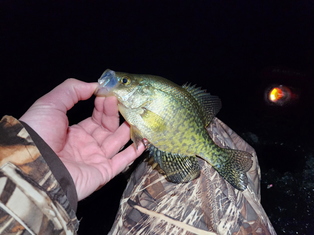 ![]() ice was beautiful clear and black. one finger sled pulling. drilled a few holes and jigged for a bit. first fish of the season ![]() my hands are big so nobody will believe it but that bluegill went 8"+![]() jigged up a few little crappies with a glow jig just after dark and then took off ![]()