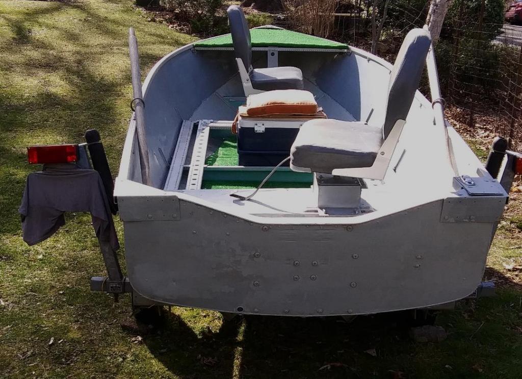 DuraNautic, 14' (current NJ registration & Bill of Sale) with two pedestal seats, boat is rated for 40 HP motor, transom 52" wide and top of gunnels (ID) at widest point is 60", very stable and there are no leaks.