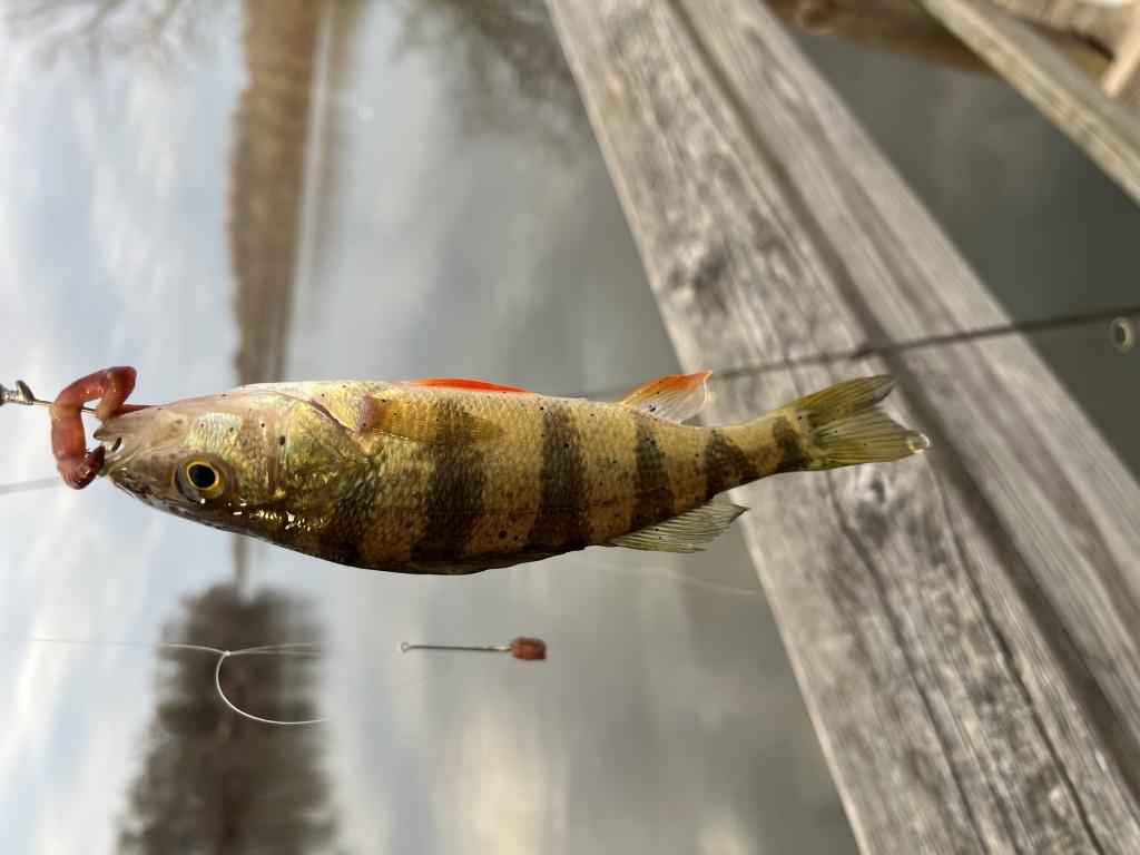Went fishing 🎣 in 46 degrees Carnegie Lake this afternoon with 6 other fishermen nearby on a warm, cloudy day with a light south wind after ice out. Saw a lot of common mergansers, mallards 🦆, Canada geese, mute swan, gulls, great blue heron, 3 squirrels 🐿️, people and a dead duck floating on the lake. Took lots of photos. Caught and released 21 white perch, 2 yellow perch and a bluegill with Walmart red worms 🪱 on 4 lb test line. I’m averaging 24 fish 🐟 per trip this year.