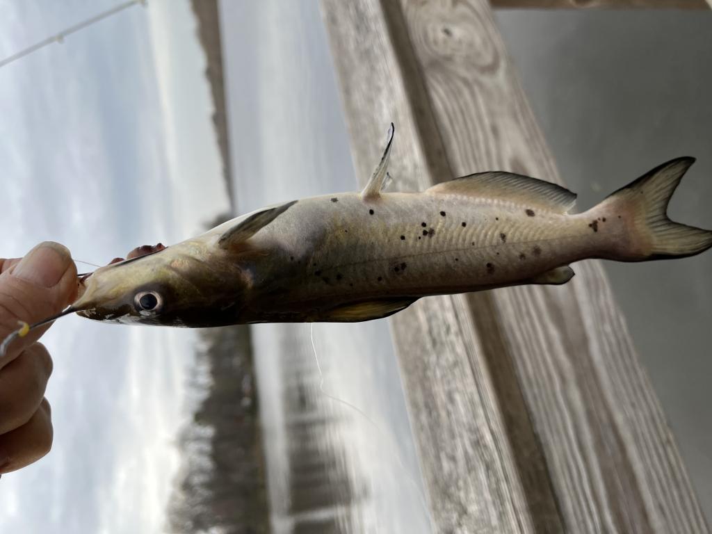 Went fishing 🎣 in 58 degrees Carnegie Lake this evening on a warm, cloudy day with a sou’wester small craft advisory. Air temperature was 74 degrees. 12 fishermen were at the lake. I caught and released 2 black crappies, a white perch, bluegill, channel catfish and 4 lb largemouth bass on my last cast of the day with 7-Eleven red worms 🪱. Took pictures.