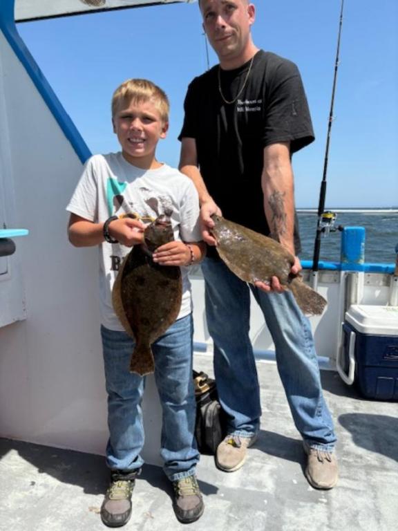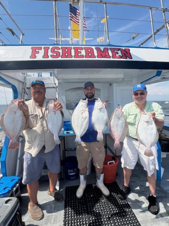 Derick lead the way with 5 nice fish, Bob landed 4 and took the pool with a very nice 5.9 pound Fluke. Couple other cutsomers with their three, some with 2 by the end of the day. Back at it in the AM, weather looks great. Don't miss the bite!