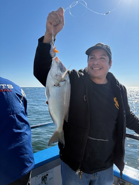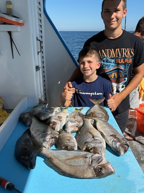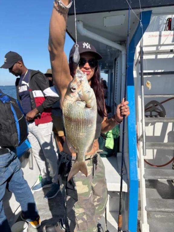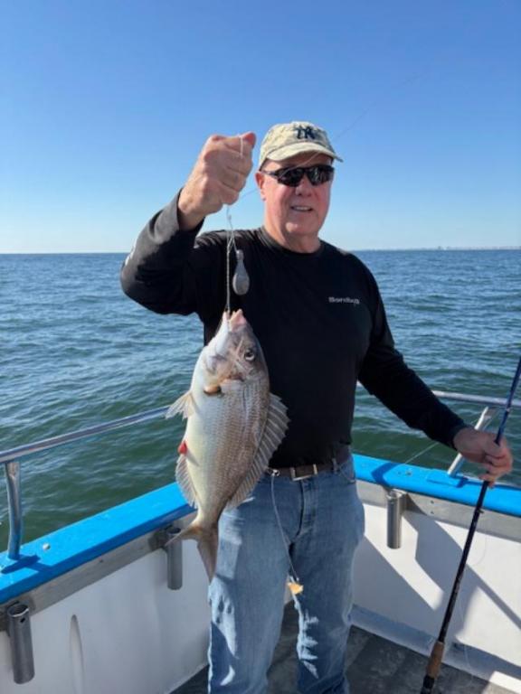 Ocean swell was gone today; the jumbo porgies were hungry right off the bat for our LA Design charter. Big Sea Bass turned on later in the day after the change of tide. The gang went home with lots of meat. NOT AVAILABLE TOMORROW (SUNDAY). Back to our daily schedule on Monday. Weather looks great all week!! 7:30-2:30pm. Open Boat, No Reservations. Fare is $90, Rod Rental $20. Capt. Ron |