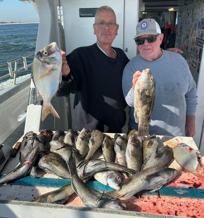 Woahh now that was some good fishing!!! Truly drop and stick fishing from start to finish. Couple drops were absolutely loaded with all inshore jumbos! Double header keepers flying around the boat all day long. Checked out some other areas at the end for the next few days and found even faster fishing with most baits not even hitting the bottom🔥 A truly incredible amount of fish moved in! Bunch of guys had over their limit, even some with double limits, spreading the love around the boat to those who had short fever. Plenty of fish to go around for everyone to go home with! Also had 1 drop today that was LOADED with the biggest kind of porgies! Was able to add a bunch of them to the box as well. And as usual, the togs were snapping if you were able to get a bait down to them. Bunch of keepers while throwing a handful of roaster size fish back to make more baby togs. All in all a fantastic day on the water, fishing and weather wise!