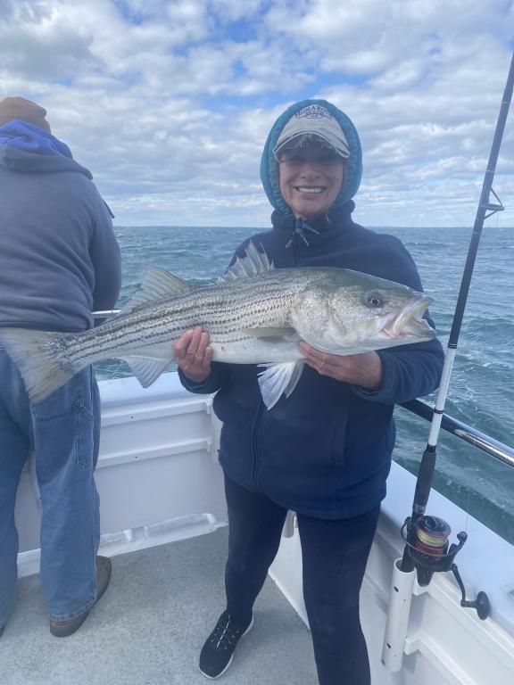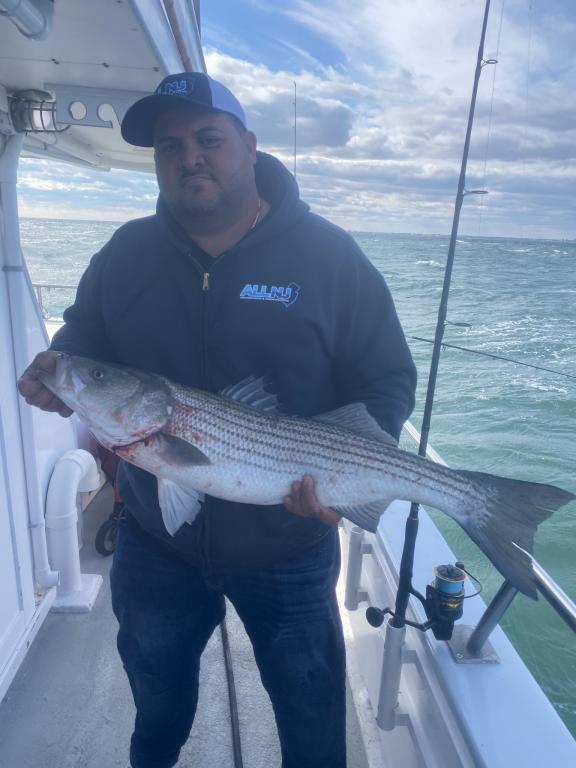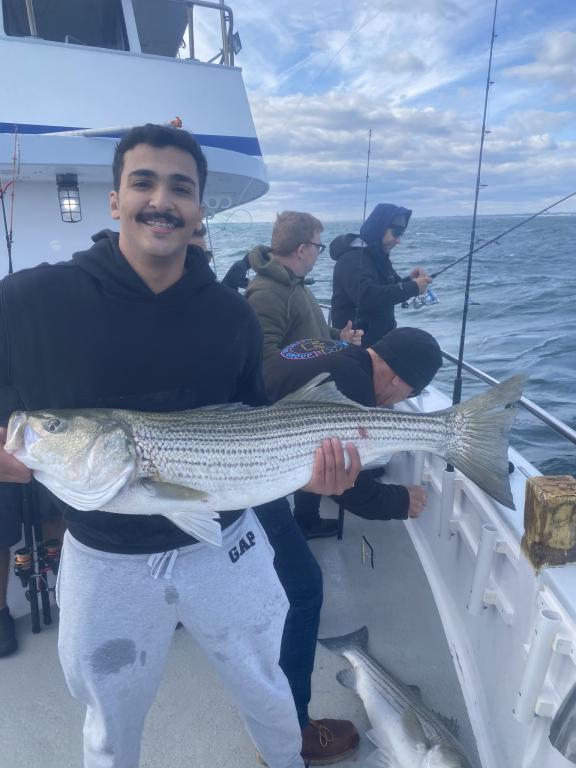 We had multiple fish on at a time which were mostly Overs that were safely returned. We did manage a KEEPER today! Overall, it was a great day. The weather looks awesome for tomorrow so come on down and join us for another exciting trip. See you on board - 6:30 AM DEPARTURE. Starting Wed., November 5th and every Wednesday throughout November, the pool winner will not only take home the pot, but they'll also win a gift certificate from FISHERMEN'S SOURCE. Don't miss your chance to win big both on and off the water! THIS WED., 11/5, REPRESENTATIVES FROM FISHERMEN'S SOURCE WILL BE ON THE BOAT FILMING AND SHOWING OFF THEIR RODS, REELS AND TACKLE! It's a great opportunity to fish and check out some awesome new gear. Don't miss this exciting event! The GOLDEN EAGLE sails every day for STRIPERS & BLUES at 7:30 am from Belmar Marina in Belmar, NJ. For more information visit us at www.goldeneaglefishing.com or call 732-681-6144. |