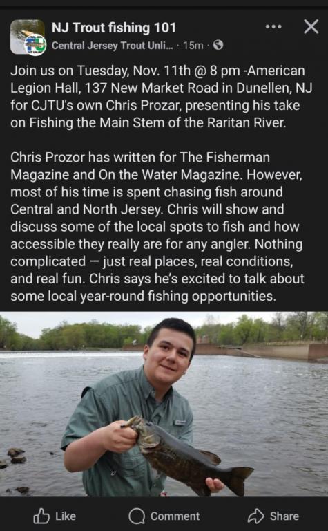 I tried talking to Central Jersey Trout Unlimited for close to 15 years about opportunities close to home, they wouldn't have it. I spoke to every other TU group in New Jersey about the Raritan river. Glad to see they are finally coming around.