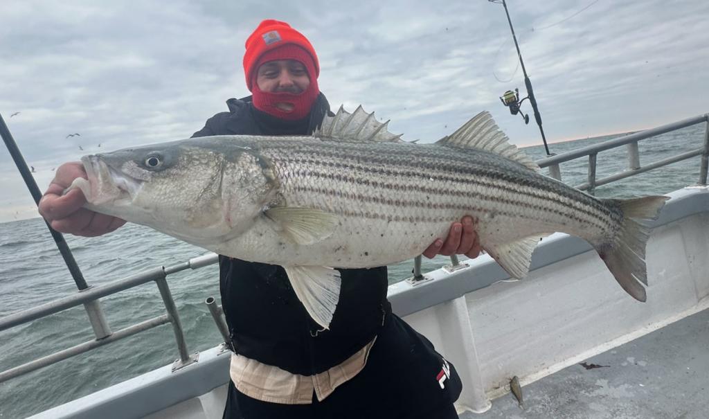 Got out this morning and had fish right away close to home. Picked a couple a drift but it wasn't great. Left it looking for better, and boy did we find better🔥Miles of birds and bass annihilating both peanut and adult bunkers, without a boat around. Some of the sickest feeds we've seen all year. Had our boat limit of keepers in the first drift or two and played catch and release for the rest of the day. We caught fish on jigs, shads and topwaters today. It seemed the harder the wind came up against the tide the better they bit. These bass love a hard November westerly🔥🔥 Here's a couple of the pictures, guys were crazy busy with the nets all day so only snapped a few. Forecast looks exactly the same tomorrow, let's go get on this bite!!! Boat is wide open tomorrow morning, come on down before the weekend crowds! Bring some heavy shads, 2-4oz worked the best. Sailing Open Boat 7:30AM-2:30PM 2 Simon Lake Dr Atlantic Highlands NJ Secure your spot at fishdarkhorse.com or call/text 973-440-0335