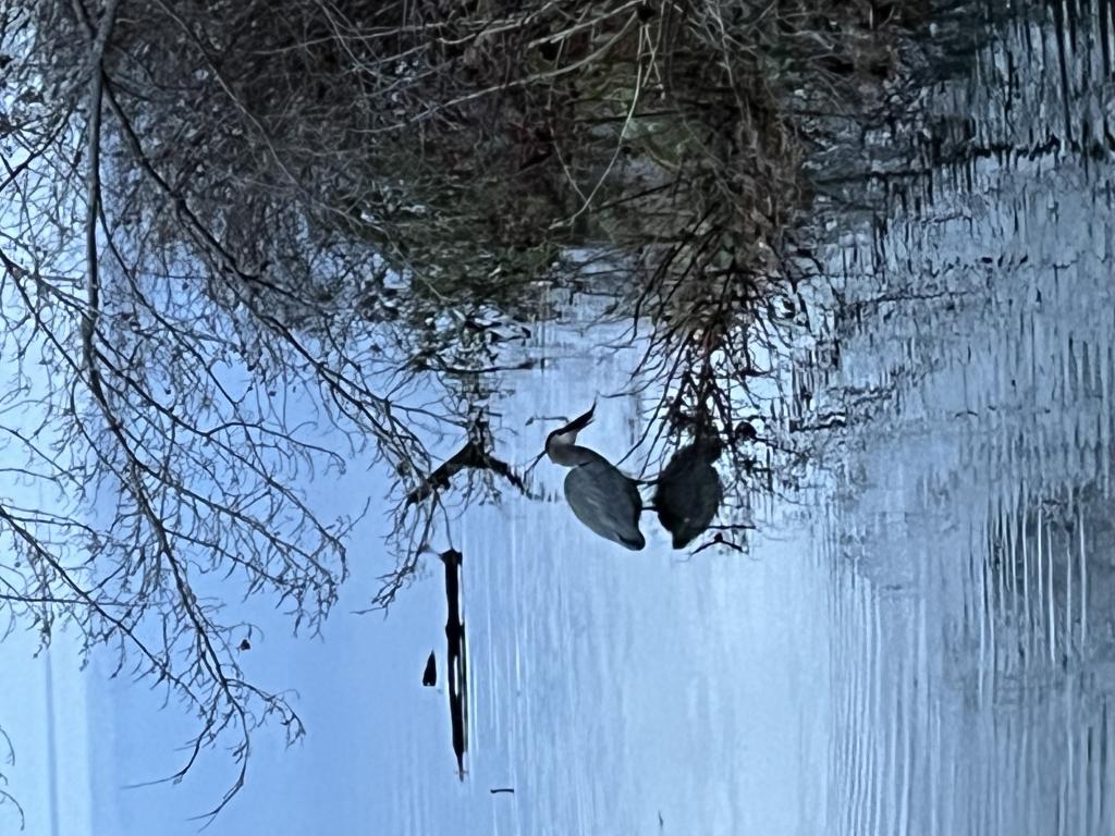 My friend Big John and his wife Ellen caught two striped bass each this morning while plugging the surf. Saw birds and boats 🛥️ offshore and surf and jetty fishermen on the Manasquan Beach cam. I went ultralight jigging in 48.5 degrees Carnegie Lake this afternoon on a cloudy ☁️, cold day with little wind 💨. Only saw 3 fishermen. Caught 3 black crappies to 9” and 12 white perch to 9” with a 1/32 oz tube jig on 2 lb test line and Walmart red worms 🪱 on 4 lb test line. The resident great blue heron was in my fishing 🎣 spot when I arrived and still there when I left after 6:30 PM. I was the last fisherman to leave. Fish 🐠 were swirling. Geese, ducks 🦆, cormorants, blackbirds 🐦*⬛,robins and gulls were flying. Took pictures.