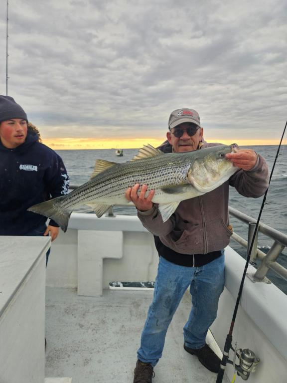 Gambler's Striped Bass trips have been productive this week. Catching a lot more of the sizes that we can keep now and using a lot more bonus tags --which we have right onboard for your convenience.