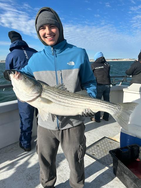 As long as the water does not get too cold, too quick, we should be catching stripers for some weeks yet. Do not let the West wind keep you home --even up to 30 knots forecast, we are protected by the lee-of-the-land and 15 to 30 NW is great conditions for striped bass jigging.