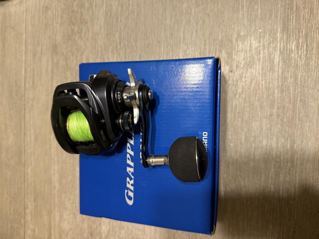 Basically new shimano grappler bb 150hg reel spooled with 10lb xbraid x8 includes box asking $125 additional for shipping