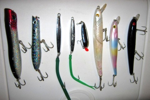 Well September is here and the surf fishing should be heating up. I like to "kick it off" with the Mullet run which starts around the second or third week of September. This is my favorite time of year and I look forward to the cooler mornings and evenings ahead. I am also looking forward to have the opportunity to catch Striped Bass, Bluefish, Little Tunny, and Spanish Mackerel, from the surf and Jetties in Monmouth County. The following post provide some basic information and tips on surf fishing with artificial lures (Plugs, Poppers, Metal, ect) for the above species along Monmouth county beaches. I hope this is helpful and feel free to comment as usual. I still don’t know it all. This post is intended to help people that may be interested or new to surf fishing in the area. When and Where Although fish can be caught anytime of year along the beach my favorite time is in late summer fall and early winter. September through December. (My son and I have caught many Bass in January and February as well, but the fish tend to be smaller. I fish during a Northwest, Northeast, East and North winds at any speed. I do not like South/ South East winds for surf fishing. The water gets dirty and cold due to up-welling and I find it to be unproductive. Some will argue, but I will fish on any tide. As my dad used to say when I would complain about the low tide…..”They’re not too tall” I fish a half hour to hour before and after sunrise and the same at sunset. During the fall you can catch them anytime but the most productive time seem to be right before it gets dark or right before it gets light. There are many spots to fish along the shore in Monmouth County. You can fish Sandy Hook, Monmouth beach, Long Branch, Deal Asbury Ocean Grove and so on. There are several Beach access points in each town. Sandy hook and several parking areas. I use parking lot 2 if I fish the hook. I fish in the Deal and Allenhurst area and I have to say there are no bad fishing spots. What I would say is don’t drive around “looking” for fish. Find a stretch or beach and start fishing. You don’t have to see them for the fish to be there. In other words spend more time fishing and you will be more successful. What you will need 1) Rod A 7-9 1/2 foot Medium action rod rated for 15-25lb test. I use a 9 1/2 foot Lamiglass Fiberglass rod and Old Penn 650ssm or 750ssm reel. Tip You don't need a 11ft rod to cast a mile in this area. Most fish are caught right in the wash or next to the jetty. I use a smaller rod on calm days and a larger rod with bigger reel on rough or windy days. 2) Reel Skirted spool reel capable of holding 250yds of 15-20lb test. There are so many brands out there that fill this requirement. I use the Penn as a "reference", you can go up or down in cost from here. Van Stall, Diawa and Finor also make some great high end reels. I have been using the reel pictured below for at least 20 yrs and with minor repairs now and then it works fine. Tip: Do not drop your reel in the sand or rinse in the surf. Always rinse your reel and rod off with fresh water when you get home and it will last much longer. 3) Line I use 17-20 pound test mono. I like Ande and Trilene XL in the colder weather because it is softer and does not stiffen up in cold conditions. For braid I use 30-50lb Power Pro. Again, there are many brands available so use your favorite. note: I do not like braid when using Pencil Poppers. The braid tends to "drop" down the spool when imparting the popping action. This may cause a tangle. I also prefer mono in rough surf conditions as it acts as a shock absorber resulting in less fish lost. Tip: Tie a 50lb 12-18in shock leader to your braid using a Albright or Blood Knot. It will hold up against the sharp gill plates of Stripers and act as a shock absorber. 4) Waders Waders have improved so much over the years. Breathable materials make them lighter and more comfortable than ever. I use the breathable "boot foot" chest waders with a belt for safety. Cabealas, Orvis and others sell them. I use both. Tip: Wear appropriate weight "Polar fleece" under the waders for extra comfort. AND ALWAYS WEAR A BELT FOR SAFTEY. Tip: Creepers, Corkers (Cleats) are not required for fishing from the sand but a necessity when fishing from the rocks. The tie on cleats will come off in the surf so watch out! Some brands come with Velcro straps; these may be a better choice. 5) Lures "Match the Hatch" as they say! I have narrowed down the lures that I bring to the surf with me. Think high, medium and low. I use a teaser rig when using metal and plugs. Poppers get a 12-18in shock leader. High: Poppers surface lures in the 8in and six in. I use Pencil poppers a lot and when the mullet are in, the smaller size one can be deadly. Vary your retrieve and work that popper right to the sand. Often a Striper will hit right in the wash at your feet. Tip: Small red and white pencil poppers are deadly on Little tunny. Use a fast popping retrieve when they invade and hold on!! Medium: Swimming plugs like the bomber lures A-Salt or yo-zuri Crystal minnow work well. Reel faster to get down a little further, slower to stay closer to the surface. These lures seem to work best when you reel very slowly. Tip: Again, reel the plug right up to the sand, use with a 30-50lb "teaser rig" When the waves or current pulls on the plug, stop reeling and let the wave/current action do the work. You will often get a hit as this bait is holding in the current. Bring two sizes and two colors, Black at night or low light in the evening and White in the Morning. Low: Metal lures, Hopkins, Kastmaster, or my favorite, 2-3 oz diamond jig with a green tail. These often work best in rough surf and when the fish are feeding on sand eels. Cast to diving birds, let it sink and start reeling moderately fast. Often you will get a fish on as soon as you start reeling. Tip: Don't let heavy surf stop you from fishing. A hard dry Northeast can be just the thing 