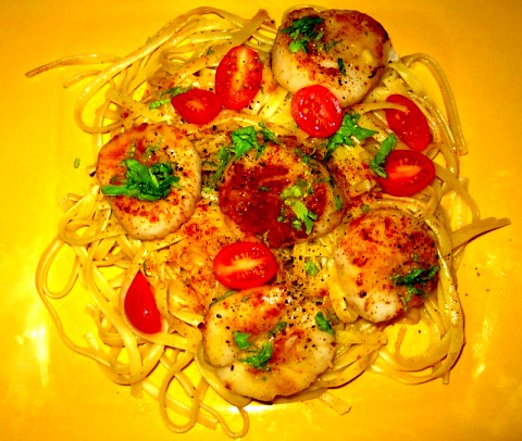Had scallops, crabmeat and shrimp with garlic, onion and plum tomatoes over fetachinni (spelling) Monday night (and Tuesday night) and it was slamming! |