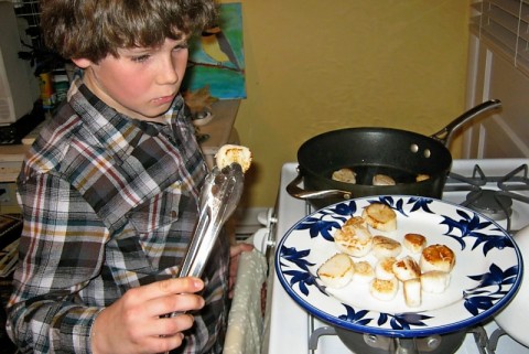 Scallops over linguine with Orange butter and shallots Ah Ha!! Doesn't get better than this! Ingredients 11/2 lbs fresh Scallops 4 tablespoons orange juice 2 tablespoons lime juice 1 chopped shallot 1 lb linguine sea salt, white pepper 2 tablepoons olive oil 1/2 stick softened butter Directions In a large 8 qt. pot cook the linguine, when done drain and coat with a little olive oil. Season scallops with salt and white pepper. In a 12in saute pan with olive oil, saute the scallops 1 minute on each side till golden In a small sauce pan add chopped shallots orange and lime juice, bring to a simmer. Add butter a pat at a time and wisk till disolved Reduce sauce until it thickens Serve scallops over pasta as shown. Add sauce on top of scallops Enjoy, Leif Leif