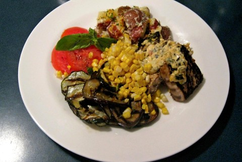 Broiled Bluefish with a Chipolte sauce, Grilled Zucchini, Eggplant, Jersey Corn and Jersey Tomato.