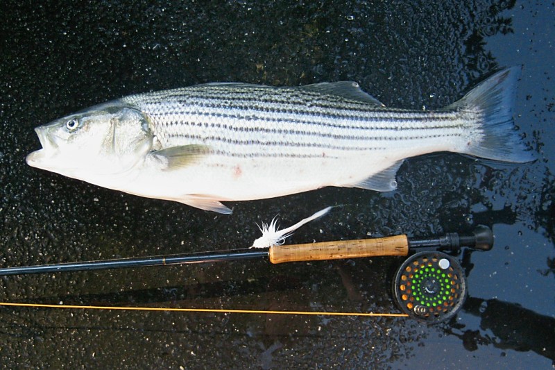Striped Bass were made to be caught on a fly. Their feeding patterns and close proximity to the shore line and Jetties make them accessible, even to the novice angler. If you have fly-fished for trout and other species you have a slight advantage but with today’s equipment and advancements anyone who likes to fish for Stripers can be a pro in no time. The trick is to keep it simple and with a little practice you will be on your way. In this post I will attempt to dispel some myths associated with Saltwater Fly-fishing for Stripers, provide simple information on how to get started in the sport including the four flies that will cover most situations. The post will primarily deal with surf and jetty fishing situations. Again feel free to comment. This post is primarily directed to those who may be interested in getting started in saltwater fly fishing and to give some perspective and general information on the sport. Myths “Fly fishing for stripers is light tackle fishing” While this can be true in some cases, The rods and reels manufactured now are capable of handling fish up to a hundred pounds or more yet are very light due to advancements in technology, the use of thermoplastic resins, graphite, aircraft grade aluminum and impressive drag systems. “It is an expensive sport” Again, while it can be, you can have a good set up (rod, reel, and line) for Stripers and Blues for under $400.00. Not cheap but in comparison to some spinning and conventional equipment I’ve seen lately, not bad. “It’s too complicated” With the advancements in loop to loop connections, no knot systems and a little research and practice, you will only have to change leaders, tie standard knots and change a shooting head (Fly line for different situations like floating or sinking line) “I can’t cast far enough to catch fish” Most fish I have caught have been right in the wash in the “gully” or along a jetty. A thirty to forty foot cast is all you need. Having out fished others using live bait and plugs, I have to say this may be more effective than other standard methods of catching Striped Bass. What you will need One mistake that fisherman do when undertaking the sport is to purchase a rod that is too light. If you fish for stripers, especially from the surf you need a rod that will be able to punch out large flies in wind, turn big fish take a beating. Leave the 8-9 weight rods home. They will work in dead calm conditions. I do own them but only use them occasionally for smaller fish at the end of the season. Rod, reel, line and leader I use a nine ft Orvis 11 weight rod with 12 weight shooting heads. I also use a Lamson fly reel capable of holding 300 yards of 30# Dacron or gel spun backing, a 100ft of running line and 28ft for the shooting head.( I use Floating or Intermediate) There are many manufactures, do some research and buy the best rod you can afford. For the surf and jetty I would not go lower than a fast action 10 weight rod and use an appropriately matched reel. For the leader I use a four foot piece of 50-60lb mono leader with a perfection loop in each end. Attached to that is a four foot piece of 17-20lb fluorocarbon leader, perfection loop to the butt. This may seem like over-kill (it is a Tarpon rod) but make no mistake, a five pound bass is still a thrill on this rod. You will be able to fish in most conditions when you need to and when that cow starts heading for the rocks; you can put the heat on. am not out to have “fun” with the fish. I want to land them as quick as possible and keep it if it is a keeper or let it go if unharmed if I choose. Waders, Korkers, (Cleats) and Striping basket If you already have a good pair of waders and carbide tipped cleats, you are set. All you need is an adjustable wading belt and a striping basket to “catch” the line as you strip it in. Use one with molded cones so the running line tangles less. Striper Flies Over the last twenty years I have tied many flies and have tried them all. I have found the following flies to be the most effective at the time listed next to them. If you do a search on any of these flies you will find images and information on how to tie them or where to buy them. 1) Popovick’s Spread Fly 2/0-4/0 Herring imitation Spring May-June Cast up current or into wave alongside the jetty 2)Lou Tabory’s Snake Fly 2/0-3/0 Mullet imitation Fall Sept-Jan Especially productive during the mullet run near the corners of the jetty or wash. Let the current /wave action work the fly. 3) Lefty’s Deceiver 2/0-4/0 General Small Baitfish Spring May-June Best color is chartreuse/white, fish in the corners near the beach in spring and late fall. 4) Bob Clouser’s Minnow 1/0-3/0 Spring and Fall The weighted head gives this fly a jigging action that imitates an injured baitfish. Each fly is fished differently. What makes them so productive is their ability to appear natural when fished and presented in the Striper’s feeding lane. Use floating line for the Snake fly and intermediate for the rest as a general rule. Earlier in the spring a sinking line may be more effective. Experiment!!! Most retailers, either on-line of brick and mortar will generally be helpful or “put together” an outfit for you based on your budget and experience. They will also put the backing, running line and fly line on the reel for you at purchase. Hope this was helpful. Give it a try and good luck, Leif