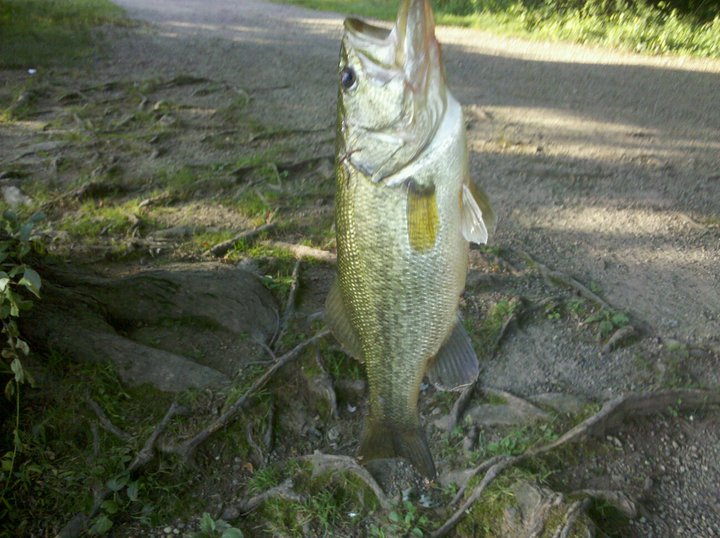 hit scarlet oak at around 6:45am put on a 1/2 oz halloween colored rat, 2nd cast musta threw it right in his mouth cuz as soon as it hit the water he hit it and took off. put up a decent fight...because of the angle of the pic it doesnt show it too well but its a lil bigger than the one from spring lake a few weeks ago...caught nothing else after within my 2 1/2 hours there