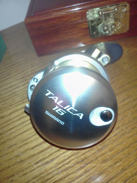 brand new Shimano Talica 16 lever Drag single Speed Big Game Reel. The High Speed, Compact Lever drags, with Powerful Gears and Drag Curves were designed for fly-lining live baits or chunks into the chum line on Long Range Stand-Up Tuna Boats, utilizing PowerPro with short top shots. The TAC8 and TAC10 were designed for fishing 40-50lb PowerPro with a 30-40 Fluorocarbon leader, whereas the TAC12 and TAC16 were designed for fishing 65lb-80lb PowerPro with a 60lb-80lb Fluorocarbon top shots.