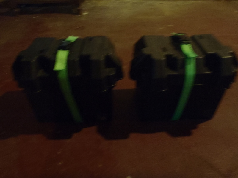 New Pair of New Stainless Steel Railings with all hardware 14" High, 86" Long $125 New Stainless Steel Railing for Center Console with Anchor Light 26" High, inside measurement on mounting flanges front 26" rear 31", can be flexed in or out up to 2" $90 2 Marine Battery Boxes $20 for the pair Teleflex Steering Unit with Stainless Steel Wheel. Unit has 16' cable |