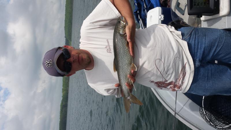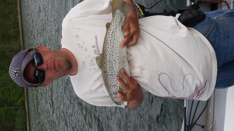 Hit the lake with bigfishy and our buddy ricanthunder lol. It was an awesome day and we def put our time in. Water temp was still hovering right around 59-60. Fish were very active early and then late afternoon. Ricanthunder (sorry that's your name now I know ur reading this lol) holds the biggest brown of this year on the boat at 27" and 7lbs and if fought like a champ!!. We also had multiple 20" 4lb footballs that bigfishy was landing. Lakers were pretty consistent all day but they were only really bitting in about 20-30ft of water even though we marked massive schools deep. We caught many and I managed to nail a bigger one in the 25" 7lb range. The smallies were also active in close for the early part of the am biggest one went about 18 inches but was super fat at 4lbs. There was no real pattern yet fish were randomly everywhere. Every fish was released fast to fight again! Its time to get em Andy!