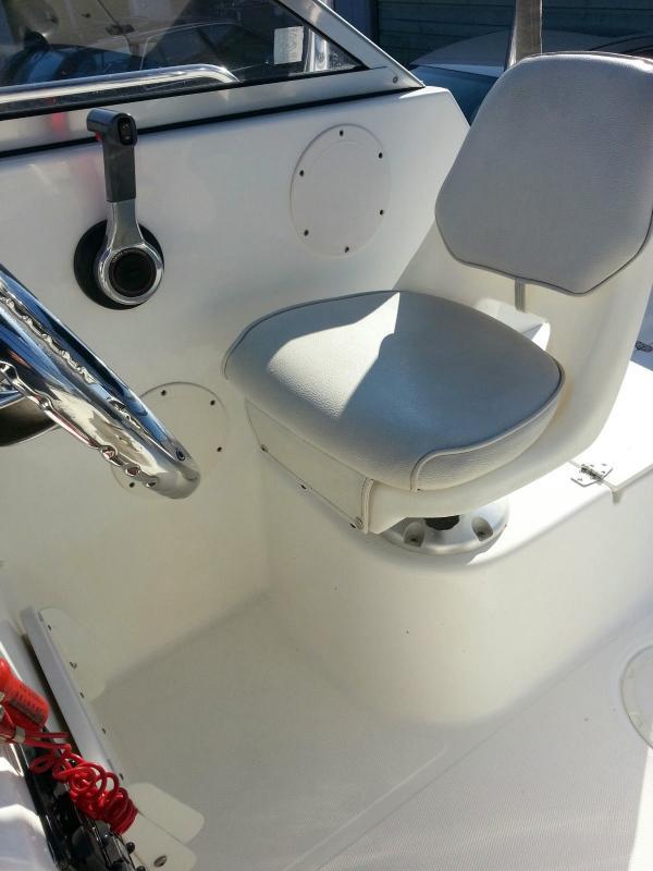 Dual Batteries with dockside power Great family or fishing Simrad state of the art integrated electronic system with radar, GPS/depthfinder/Chartplotter w/sidescan VHF Radio Eisenglass enclosure/curtains less than 1 year old, Bimini top only two years old - like new. Full Eisenglas trim tabs saltwater washdown, & Live well, 2 in deck fish boxes, + additional insulated boxes, Cruises at 25 with top end over 40. 125 gallon gas tank Radar Arch Anchor with chain and line, Currently in water, Keyport $22,500 No Trailer