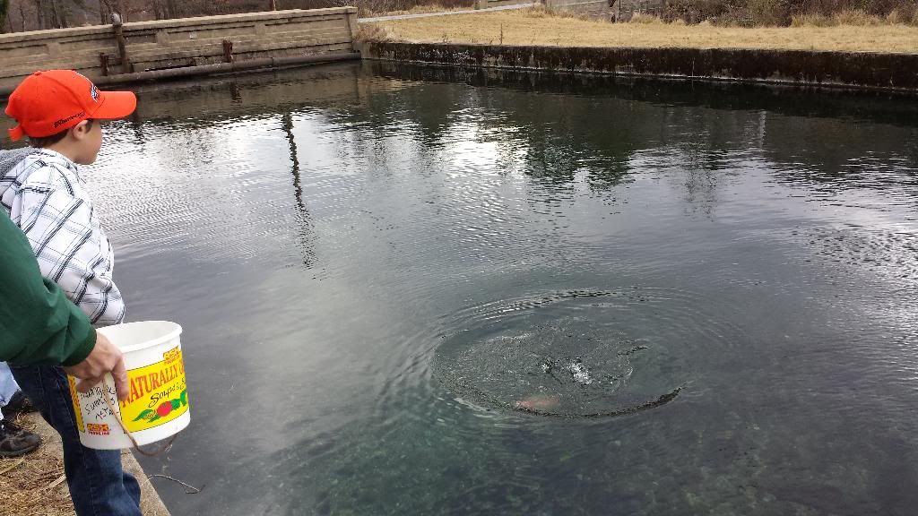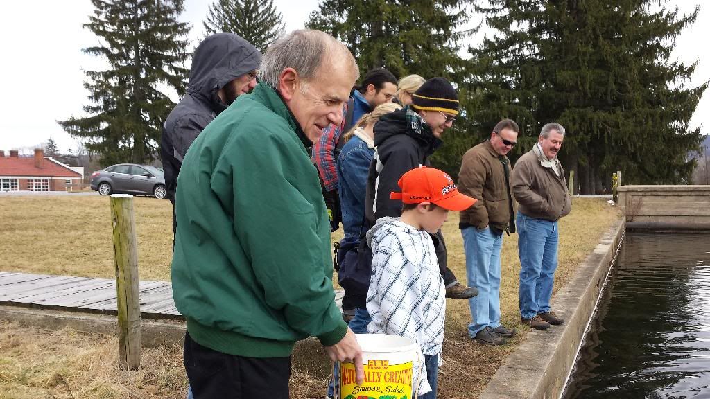 Was great meeting Andy and Wilson up there today...was proud of my little guy who was pretty well behaved during there forum, and was super excited to see the inside of the hatchery...some pics below of the atlantic salmon they are getting ready to stock of the pond where they keep some HUGE rainbows, have to be pushing 10+ lbs (Bubba even got feed them, highlight of his week :) can't wait to get up there for open house in the spring...Thanks for promoting this, guys!