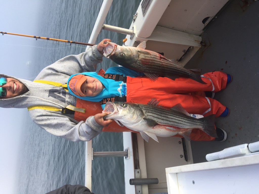Not to sound like another broken record, but we have another great day today with the stripers , Nine-year-old AJ Kilmat Grandson of Joe Florida, a mad gaffer regular . Both joe and AJ are extremely skilled angulars , AJ whacked