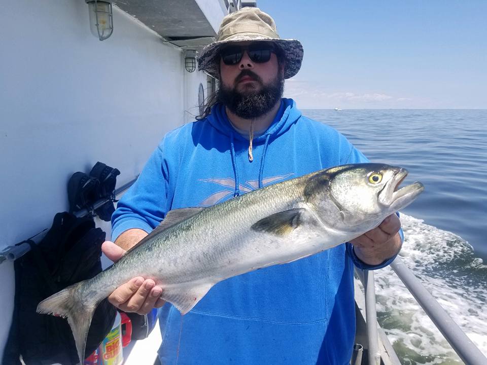 6/7 Report Blue fishing was good today. We caught blues on Jigs and Crocs once again. We saw plenty of blue fish throughout the day and read them on the scope. Some drifts were better than others. The size also varied from one school to the next from smaller fish up to 6Lbs. The pool winner was: Rickey Killey 6lb blue from Allentown pa The big Jamaica is scheduled to sail every day at 7:30 a.m. Night Trips are scheduled to sail On Saturday night at 7:30 p.m. TILEFISH We also have tilefish trips running on selected Sundays leaving 10 p.m. Our next Tilefish trip is sailing 10PM Sunday June 10th. For further information call 732-528-5014 or go to www.bigjamaica.com Photos from the last two trips. Book Online and Save $5 on adult fare Use Promo Code 5OFF Go to our website to book now! |
