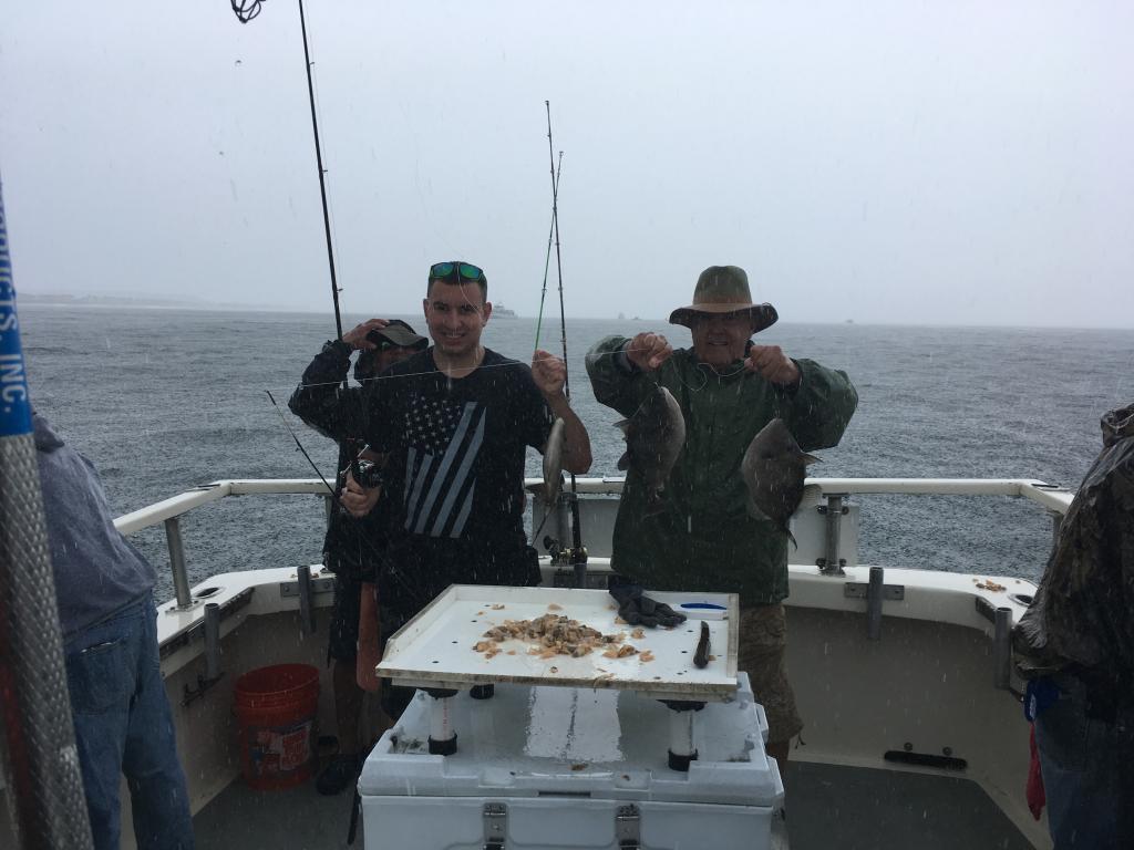 We had another fabulous day with the Triggerfish, some people with a dozen big fish, some fish over 4 pounds. We also caught the pprgies very well and a limit of jumbo we had another fabulous day with the Triggerfish, some people with a dozen big fish, some fish over 4 pounds. We also put the poor he’s very well and a limit of jumbo Seabass Giving most everybody a Extralarge bag of Fillet’sto take home. theses Triggerfish are a godsent , and will be targeting them along with other bottom fish as long as God keeps them here. It looks like a bit of foul weather on Tuesday, and we are not selling tomorrow for personal reasons, our next open day is Wednesday , and we have plenty of room , and it looks like the weather straightens out , and the rest of the week is nice Call for information and reservations
