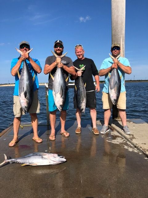 Ran our open boat tuna trip this morning with John, Ken, Andy and Nick on board. Got on the ground just after first light and was greeted to amazing mammal life and birds everywhere. Put the spread in, and found an area with some hungry yellowfins. Wound up going 5 for 5 on yellowfin to around 45#. Tried jigging for awhile as some boats were hooking up, but unfortunately weren't able to get any bites.
